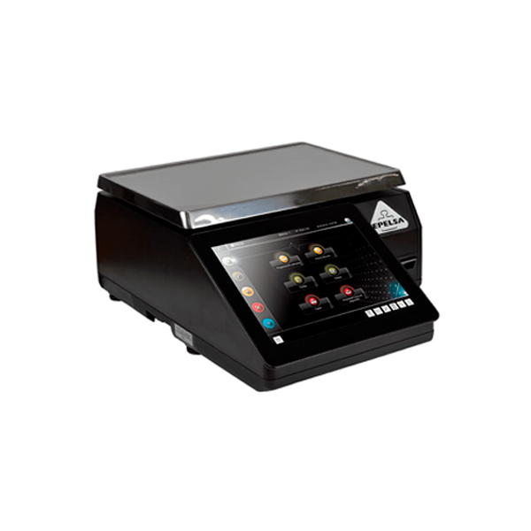 Balanza plana Linux compacta con pantalla frontal táctil de 10,4″, trasera de 9″ y etiquetadora de 80mm.