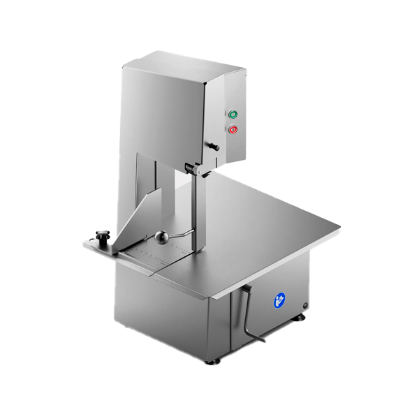 Sierra en acero inoxidable. Modelo compacto para mostrador. corte de alimento fresco y congelado.
